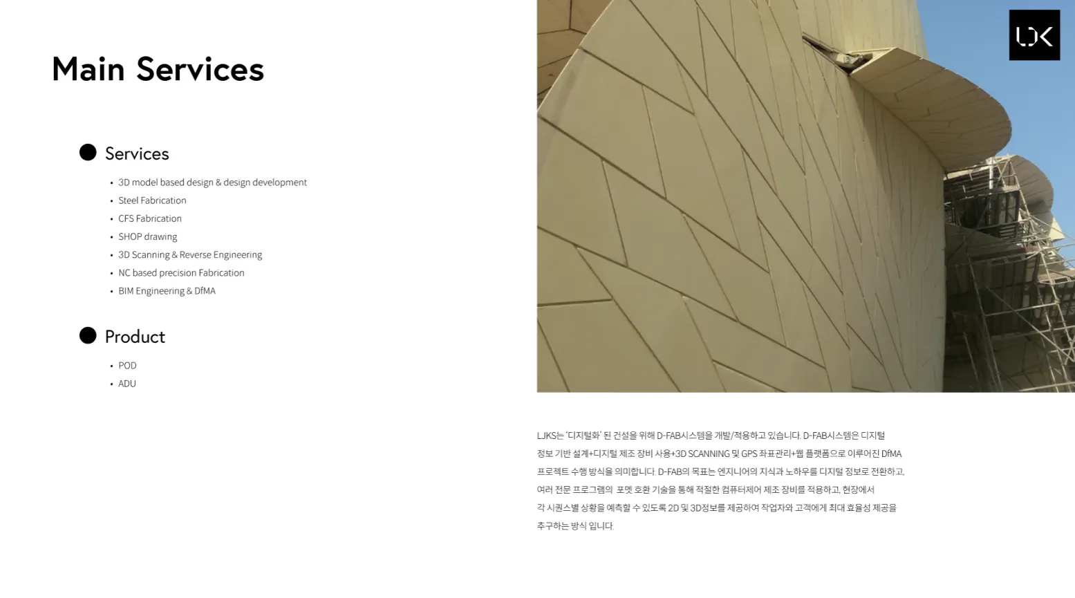 LJKSλ μ² κ³¨ μμ§λμ΄, μ°½μμ μΈ λμμ΄λ λ° IT μμ§λμ΄λ‘ ꡬμ±λ κ±΄μ€ μ μ‘° νμ¬μ λλ€. μ°λ¦¬λ λ λμ κ±΄μΆ νκ²½μ μν΄ μ΄λ €μ΄ λ¬Έμ λ₯Ό ν΄κ²°νλ©°, λ³΄λ€ λμ ν΄κ²°μ± μ λ§λ€κΈ° μν΄ μ λ¬Έ μ§μ , μ°½μμ μΈ μμ΄λμ΄, νμ κ³Ό κ²½νμ μ΄λ¦° λ§μμΌλ‘ ν΅ν©νμ¬ μλΉμ€λ₯Ό μ 곡νκ³ μμ΅λλ€.